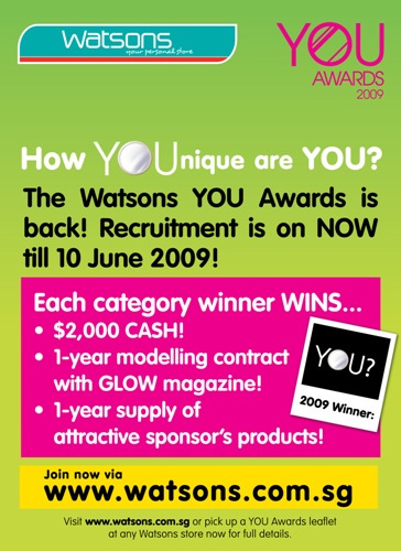 Well congrats then coz it is Watsons' annual YOU AWARDS, the award that's all about you! And you can actually win money for looking good!